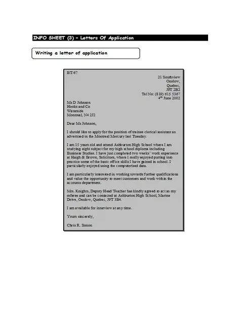 When writing how to make a letter of application for a position as a student, you will only need your full name and date of birth, and you can then tell about yourself in your cover letter. This is in contrast with the cover letter you will be required to write for applying for positions as an employee. Some of these positions may require you to enclose a job description or example of your previous work. In this case, you would need to explain how your skills could benefit the company and highlight any experience you have previously had which could be relevant to the position.