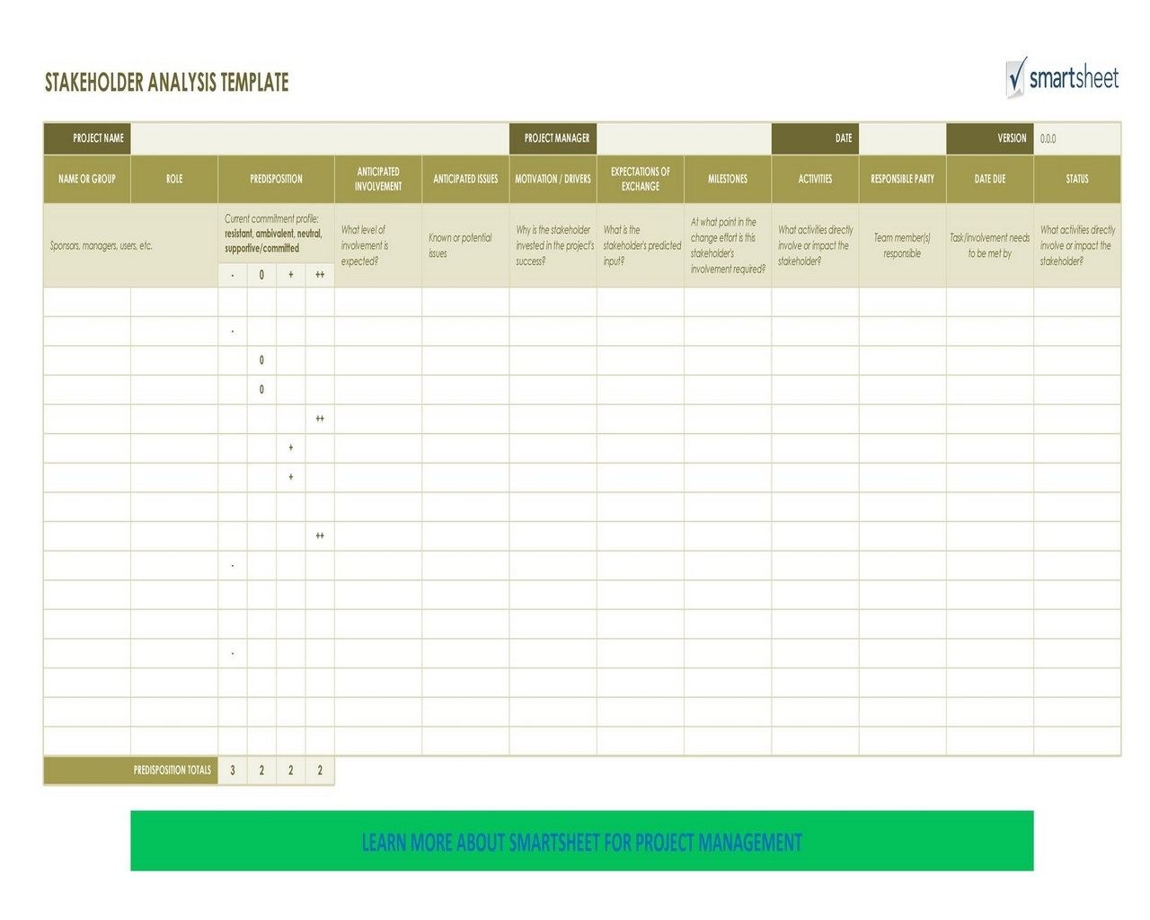 Because Stakeholders and their positions might modify throughout discussions and studies, Stakeholder analysis ought to remain a continuous procedure permitting plan design and style to adjust because more is famous about the political fact. Although advantageous throughout the task to reflect upon key complications, particularly when the task is inside trouble, Stakeholder analysis is better accomplished prior to a task is started or in some beginning phase.